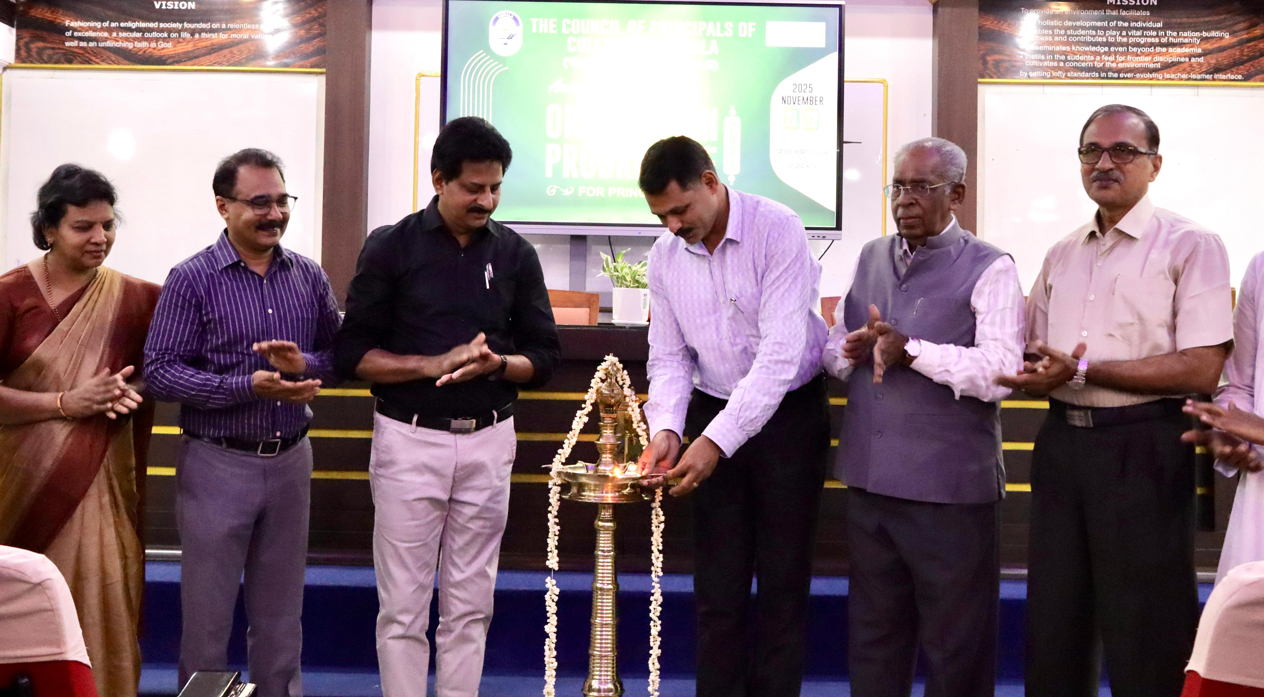 The Council of Principals of Colleges in Kerala is an inter-regional platform for principals of colleges to interact, evaluate and reflect on the current trends in the higher education sector in the state and be proactive accordingly. It has been playing its due role in the higher education scenario of the state by serving as the only common platform for the academic and administrative leaders of the tertiary education. It has been facilitating the principals to prepare and execute the action plan evolved out of common consensus, to bring to the attention of the Universities and the Government of Kerala and its concern on emerging issues and tendencies and to organize academic platforms for seminars, workshops etc. At present, principals of most of the private aided colleges under various educational agencies spread over the State under Kerala, Calicut, Mahatma Gandhi and Kannur Universities are active members of the Council.